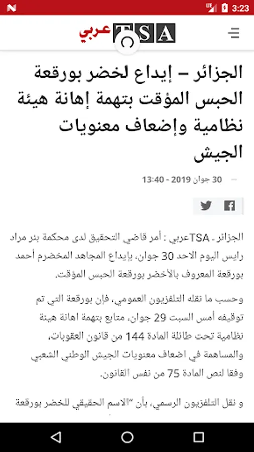 "TSA Arabic" or "All about Algeria" is an Algerian media website, the Arabic version of TSA. The site is interested in covering various news "political, economic, sporting, as well as community and culture news."