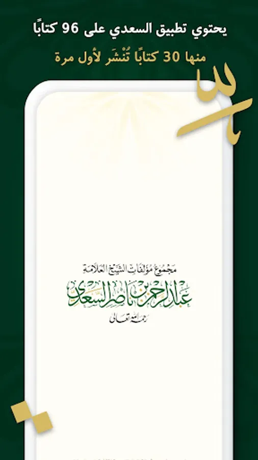 ويحتوي تطبيق السعدي على 96 كتابًا، منها 30 كتابًا تُنْشَر لأول مرة، ويتجاوز عدد صفحاتها أكثر من 20 ألف صفحة جُمِعَتْ في تطبيق واحد.