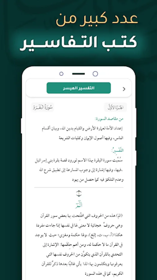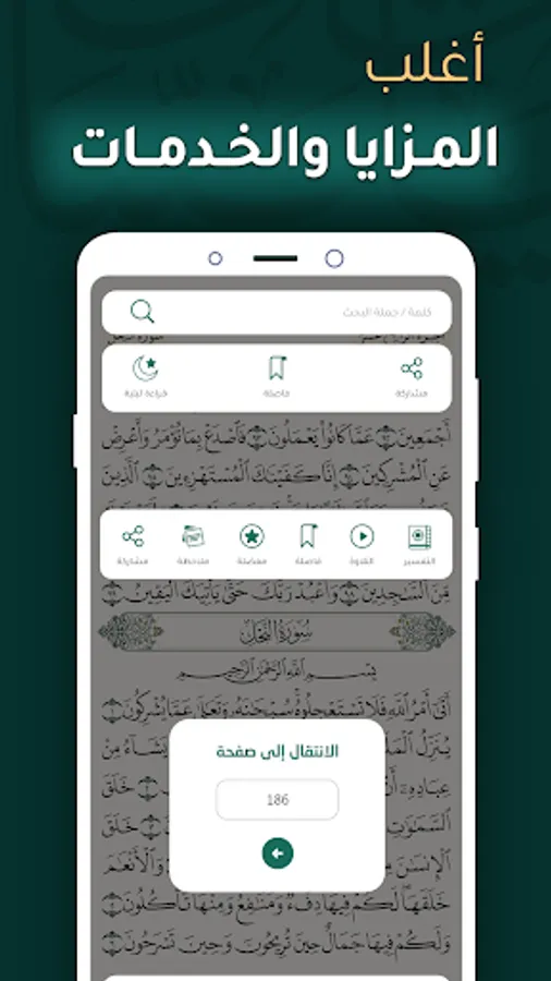 The alerts feature helps you to maintain the daily reading of the Qur’an, helps you set the time and reminds you of it, while notifications allow you to receive guidance messages, news of software update and services that have been added to the application.