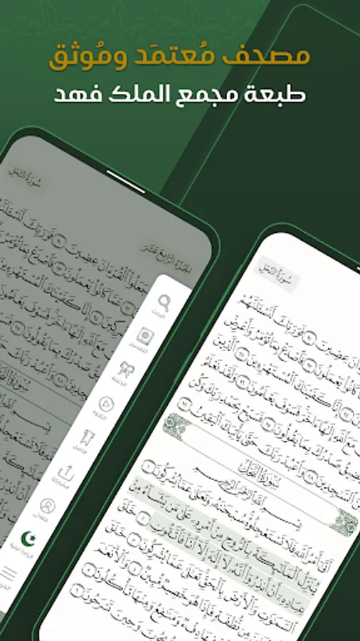 يتميز التطبيق باعتماده لطبعة مجمع الملك فهد لطباعة المصحف بالمدينة المنورة برواية حفص عن عاصم.