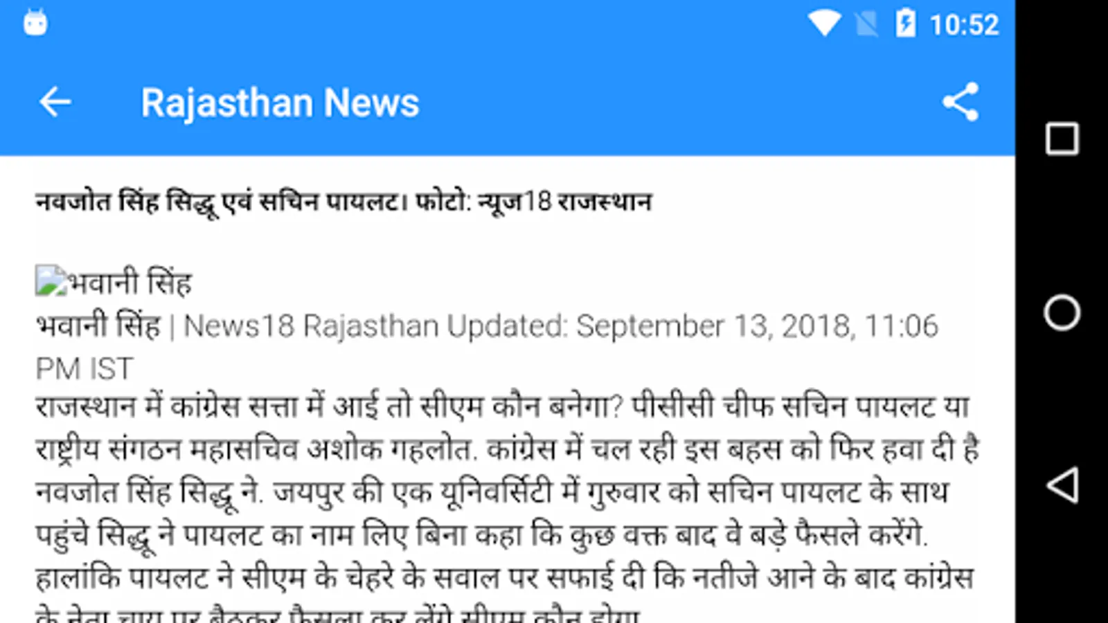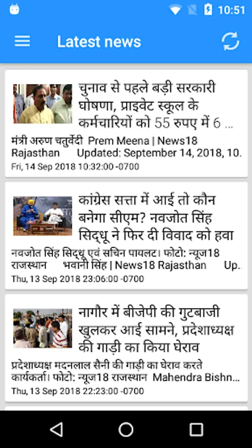 Rajasthan ki taja khabar is a Hindi Newspaper Android application. Get the latest news from your favorite newspapers websites from Rajasthan in hindi. We have live RSS feeds coming from their official sites. Explore Rajasthan's (Jaipur, Jodhpur, Udaipur, Bikaner and major cities of Rajasthan) happening topics like culture, business, politics, sports & more.