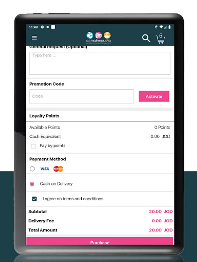 • Cash on delivery"