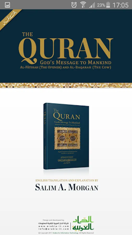 Perceiving the great value of this interpretation, and feeling the great responsibility regarding publishing and propagating the honorable sciences of the Qur’an and Prophetic Sunnah, Arabia for Information Technology, a leading company in the fields of translation and software productions, has decided to make this great work available, in both electronic and paper print formats, so that every reader, be he Muslim or non-Muslim, can benefit of it. Here, we introduce the electronic form of this masterpiece. This application provides the English translation and interpretation of the meanings of Surah Al-Fatihah and Surah Al-Baqarah. This book has been reviewed by a highly qualified team of translators and Shariah scholars.