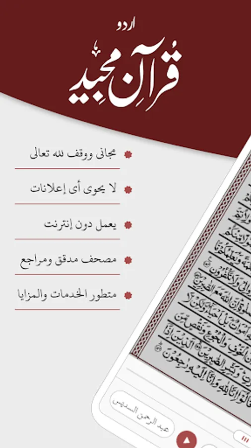 An integrated application of the Holy Quran in Urdu contains more services and advantages with an attractive design with Islamic decoration.