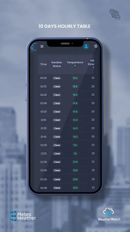 -Colour coded hour-by-hour summary detailing current and forecast weather, specific for your location