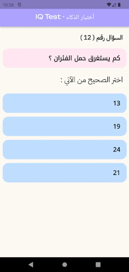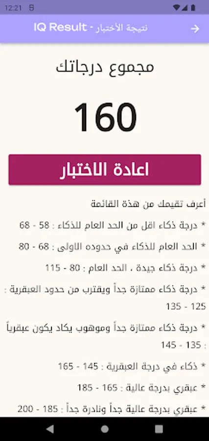 Learn about your level of intelligence through our application, as the application contains a number of general and cultural questions, mathematics questions, and calculations through which your level of intelligence is assessed