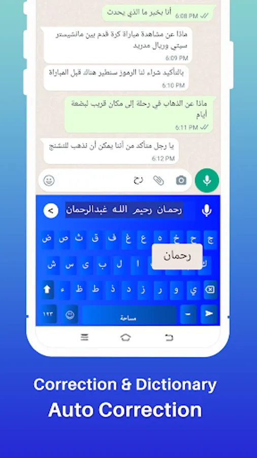 - auto correct spellings with English Arabic text typing and emoji prediction