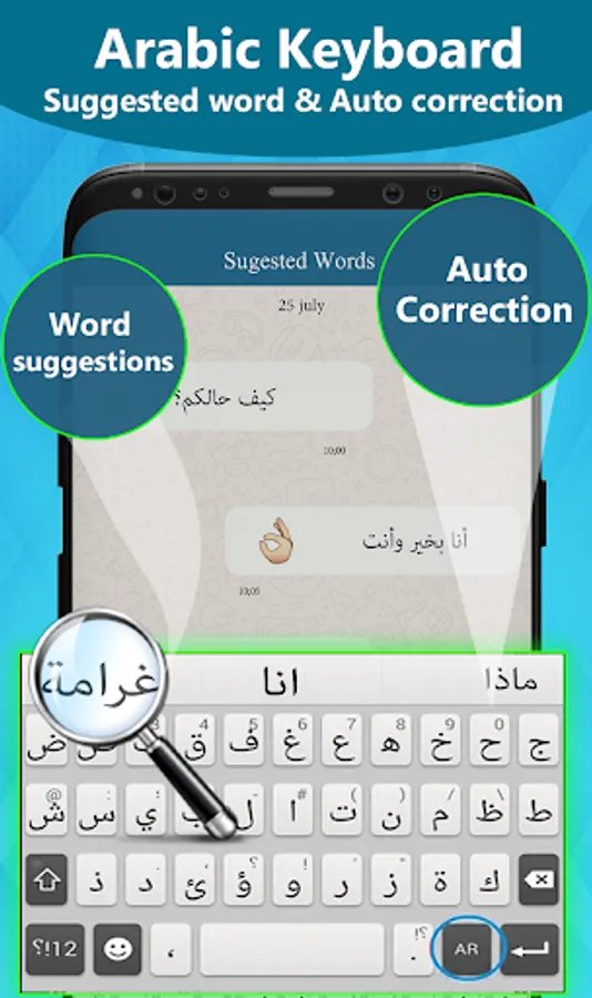 You are free to adjust any language from the multi-language keyboard on the Arabic English keypad and start typing what you want. Auto prediction of words gives you the opportunity of a high level of learning in easy and simple Arabic keyboard, words suggestion is the lightest way of teaching Arab and it forces you to explore Arab language and connotation.
