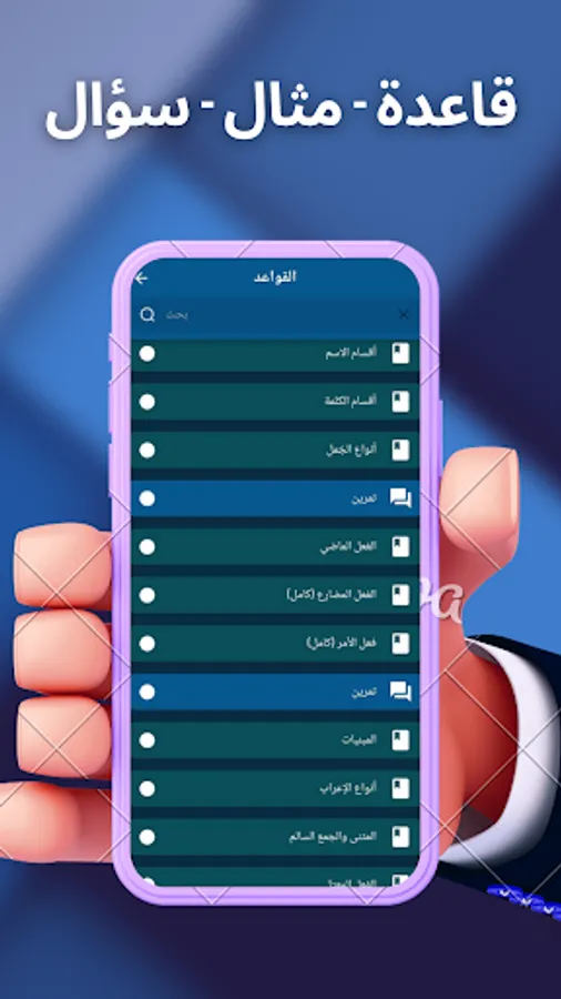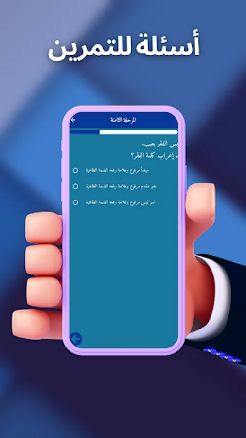 The application of rules and questions in grammar is an application that aims to help students learn grammar and syntax, which is one of the foundations of the Arabic language for students of different academic levels or for those wishing to learn a correct Arabic language without difficulties.