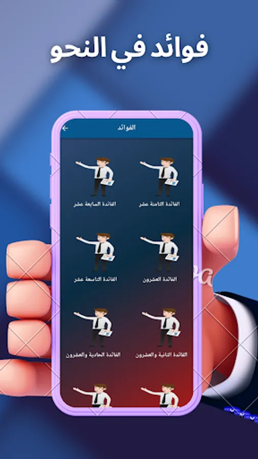 The application supports learning in an interactive and fun way. The application refers to the correct way to learn grammar and syntax from scratch as it includes many educational tools designed for students who want to learn grammar and syntax easily and helps them obtain the necessary linguistic knowledge for the authentic Arabic language. The application includes a lot of training exercises and questions aimed at self-challenging and improving students' linguistic knowledge, as well as a grammar link game that enhances students' linguistic intelligence. The application also includes grammatical benefits that help students acquire knowledge of the Arabic language.