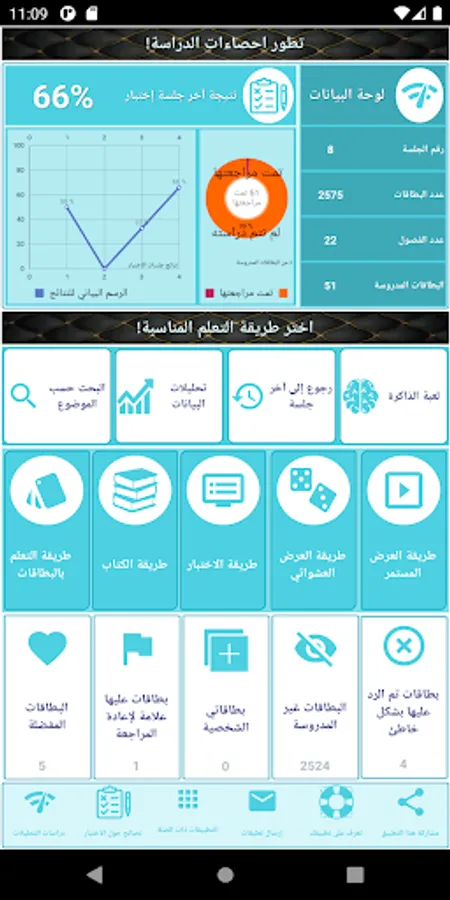 - Data analytics for study sessions and results.