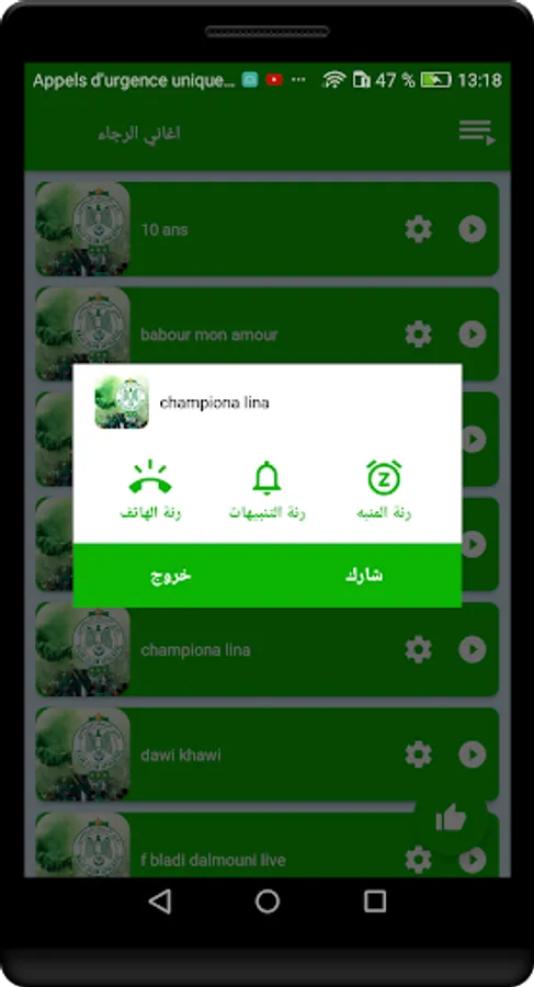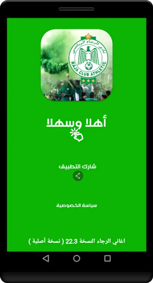 The Raja songs application offers you a wonderful collection of the best eltras songs for the fans of the Raja Casablanca sports team