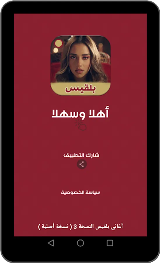 A group - Arabic Music and Studio - presents you with the distinguished application of Bilqis for the year 2020, which contains the most beautiful artworks of the singer Balqis, represented by the new Balqis songs and Balqis 2020 songs, in addition to old songs of the singer Balqis, including Balqis romantic songs, and other sad ...