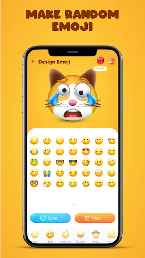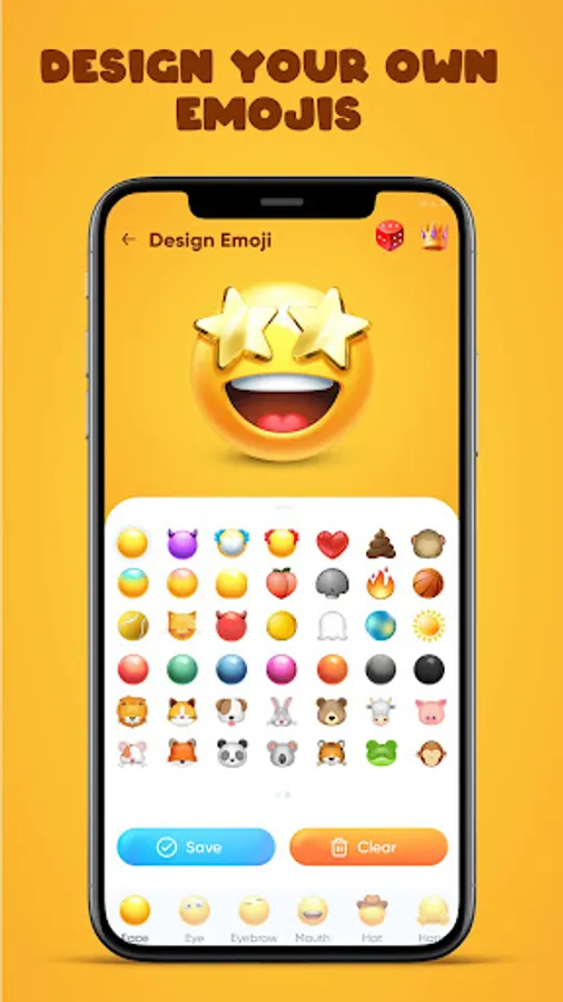 Emojist: Emoji Maker, Sticker will help you to edit your early produced emojis with amazing tools; like changing face, adding new eyes, applying great eyebrows, shaping mouths, putting hats, showing hands. Show them how your emoji looks magnificent. Mesmerize people by using our emoji maker tools for having fabulous feedbacks.