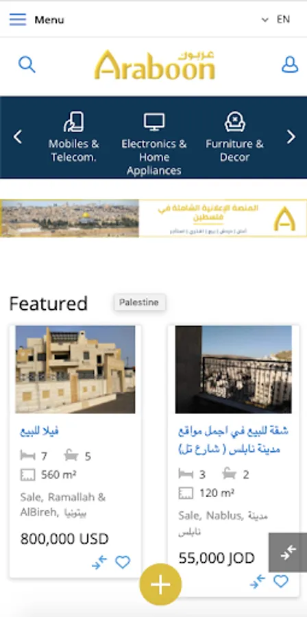عربون | منصّة الإعلانات المبوبة في فلسطين