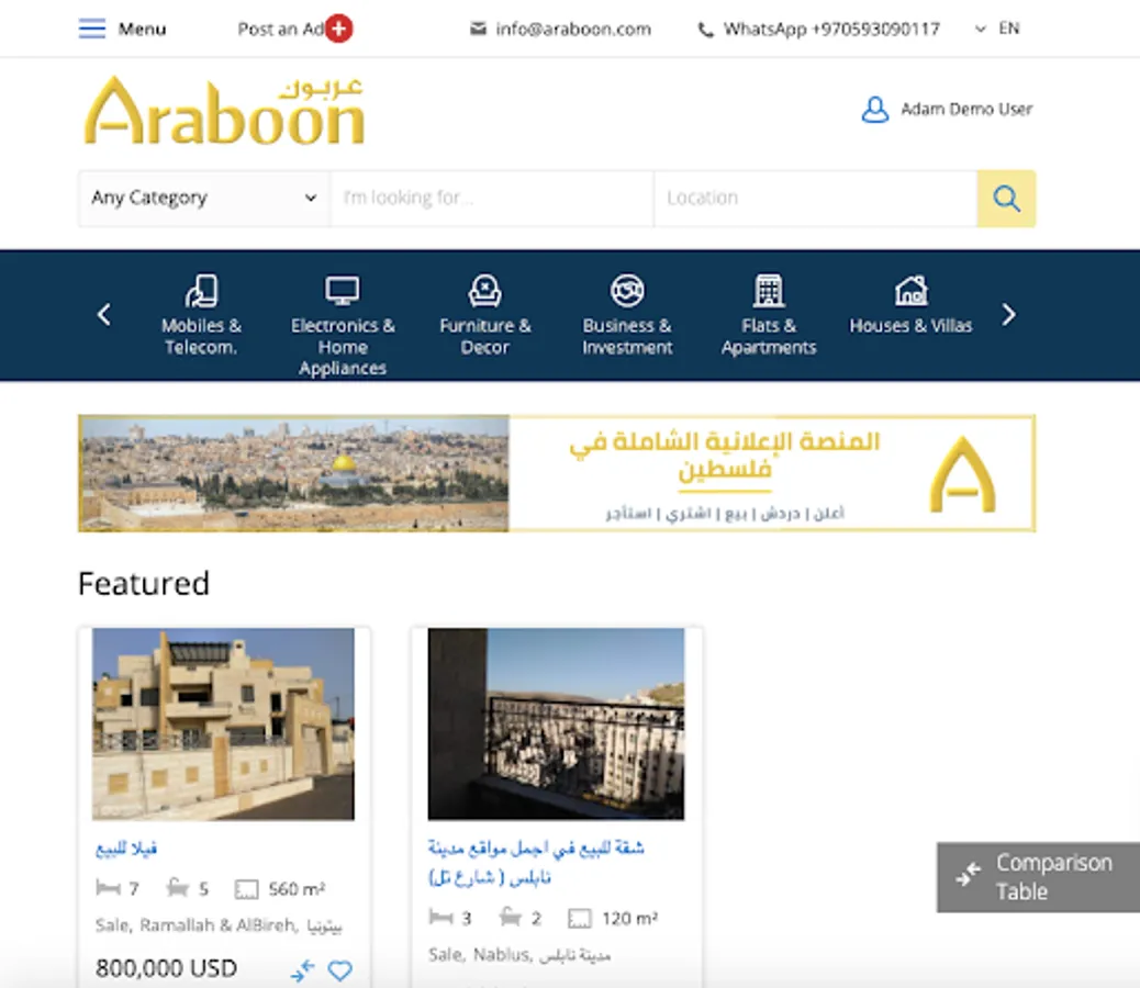 Araboon, is an online classifieds platform that allows users to view, sell, and buy products and services through an interactive online environment (customer-to-customer) without the need for an intermediary. Araboon’s vision is to enhance the utilization of unused items among individuals of the community by selling, exchanging or listing them as free.