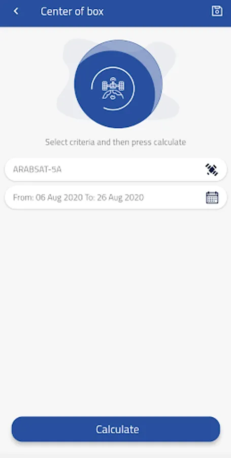 - Center of box calculator: Get satellite key orbital points (closest approach, ascending, descending) information. You may save results for later use.