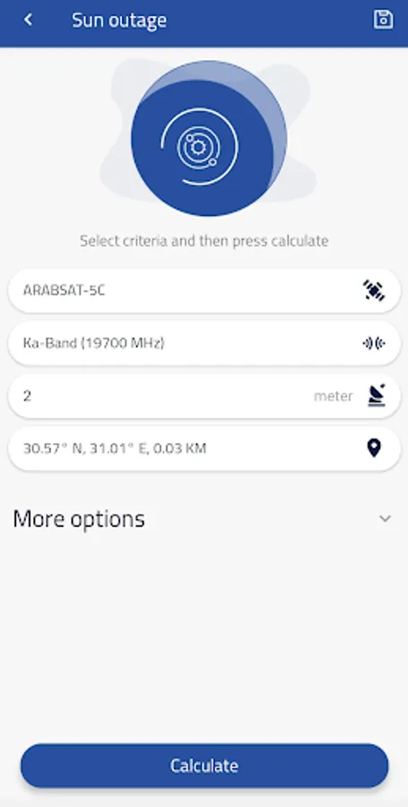 - Sun outage calculator: Calculate Spring/Fall sun outage periods information based on your dish location and target satellite. You can save results for later reference.