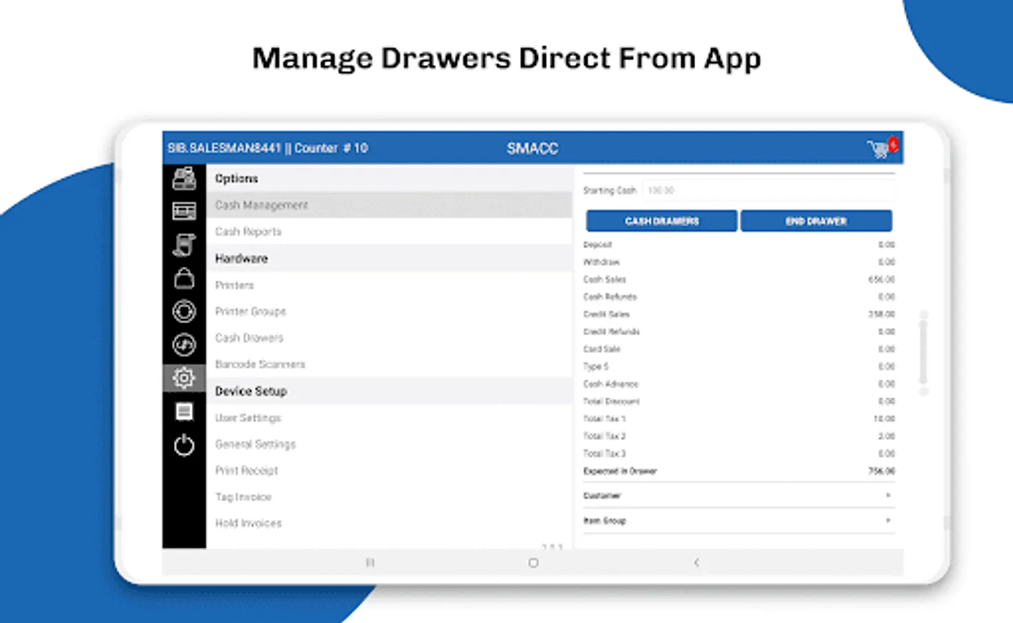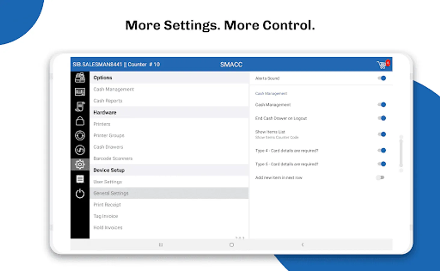 Make your android tablet or phone a complete Point of Sale System using the SMACC POS App and get rid of managing the cash registers.