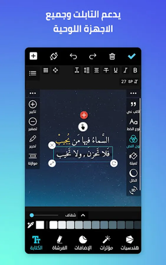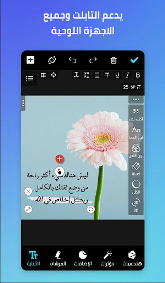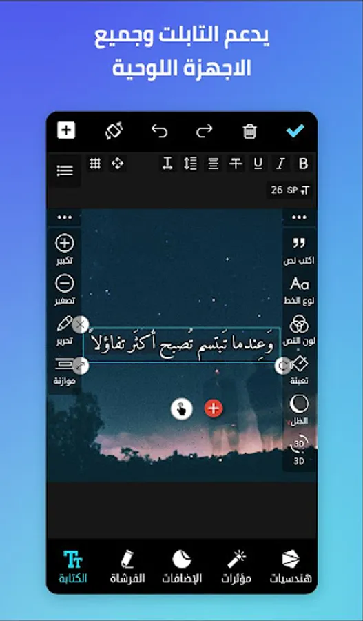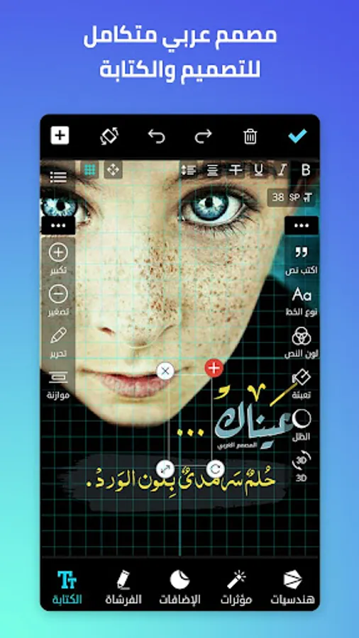 The Arab designer in his new style, the Arab designer for photo writing is the first professional Arab application to design images and write them in Arabic and English and Arabic fonts distinctive.
