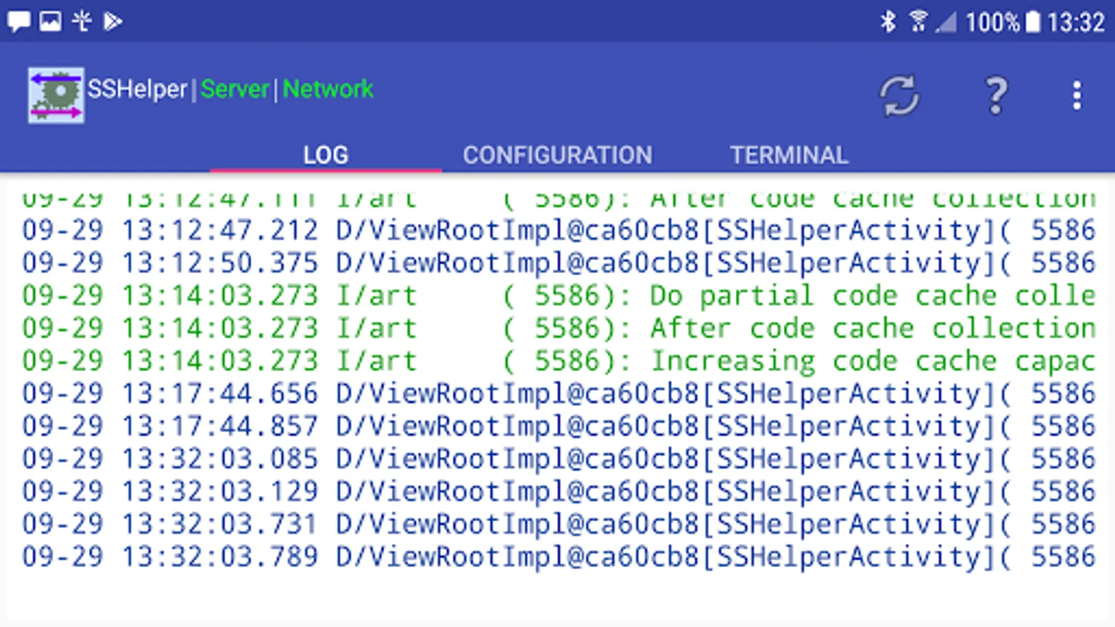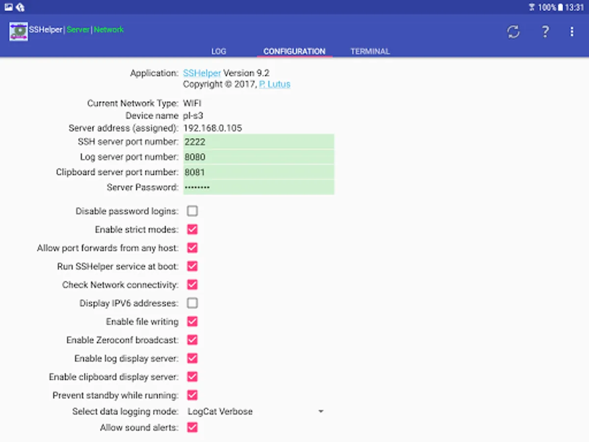 SSHelper includes a log monitor Web server showing an activity log on local network browsers.