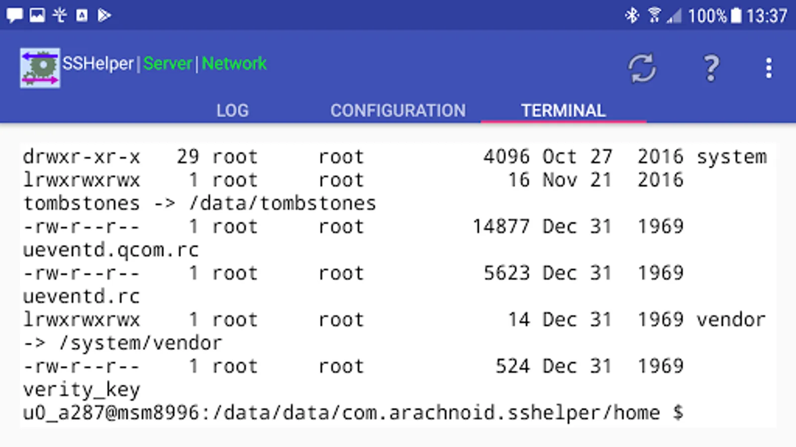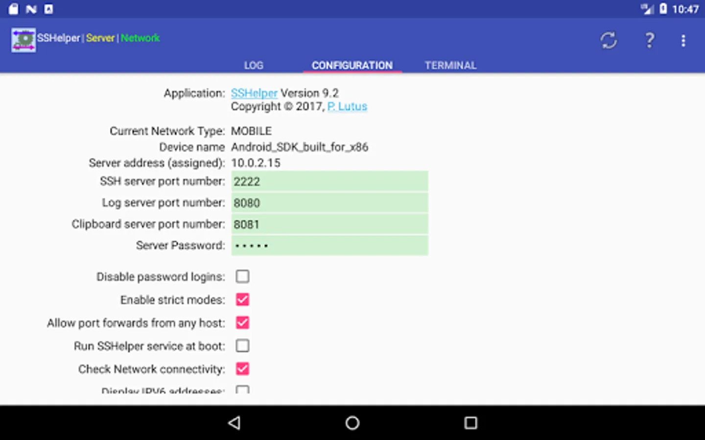The SSHelper Home Page is located at http://arachnoid.com/android/SSHelper -- visit for more information and configuration tips.