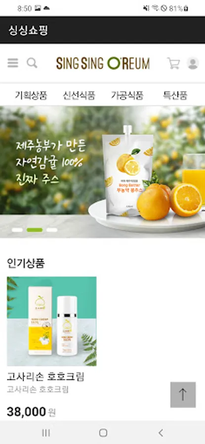 Singsing Oreum is a shopping application for eco-friendly local food market users.