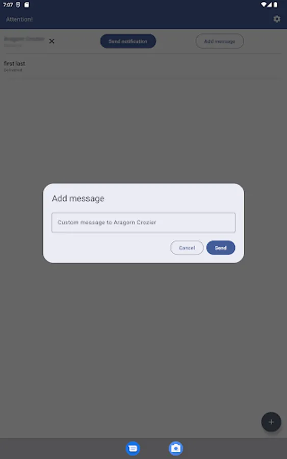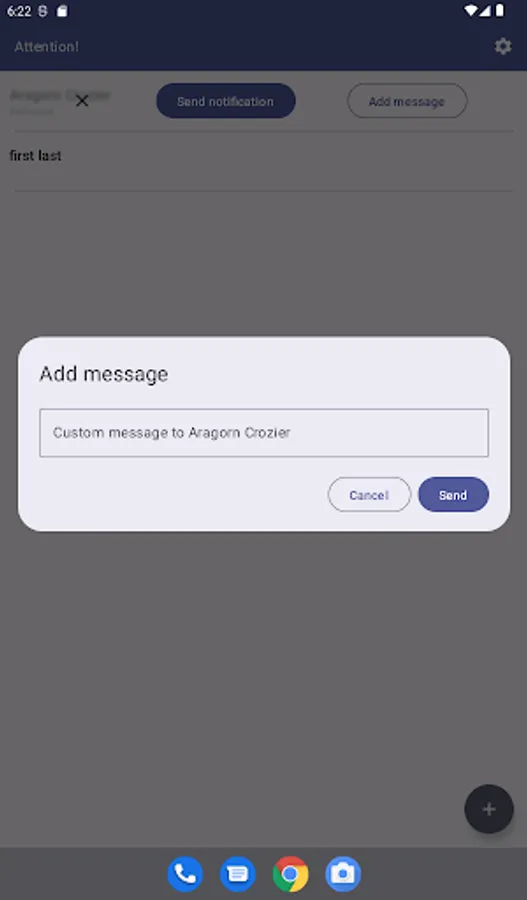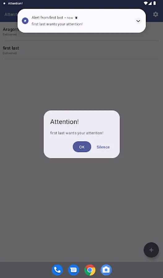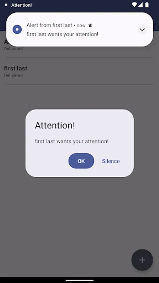 This app can be used to send a push notification and a pop-up dialog containing a custom message to anyone on a personal friend list.