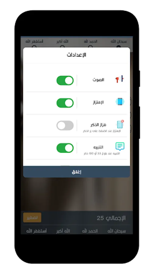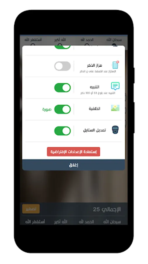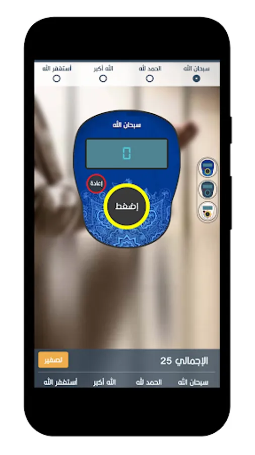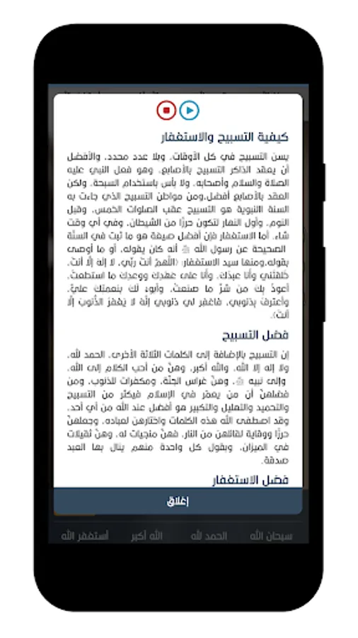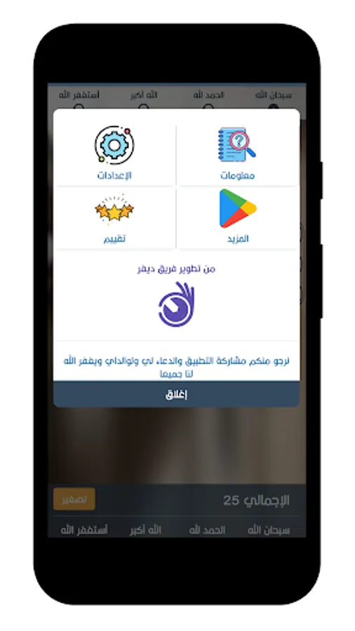 An advanced adhkaar application that contains several types of tasbeeh with a customizable design and control panel.