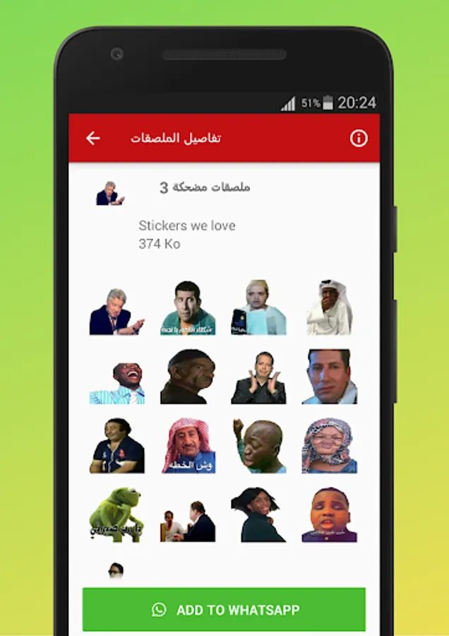 Our application provides more than 200 funny Arabic and Gulf stickers for - WastickerApp. All the stickers are recent and circulated on social media, you will not find them in any other application.