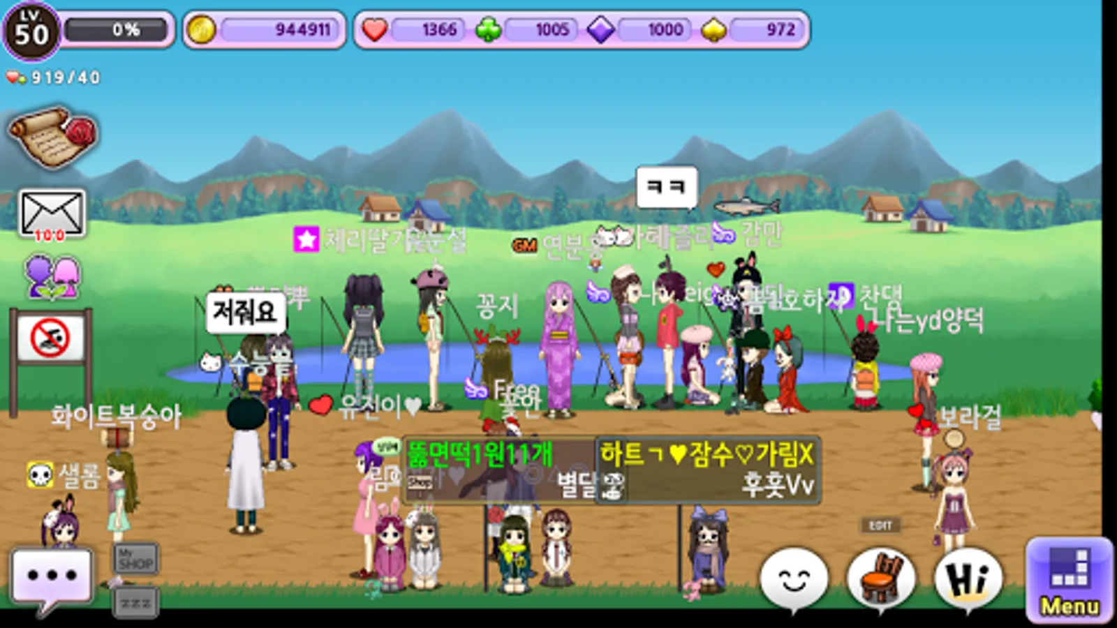 This App is a graphic chatting application. You can play with a character is wearing multiple costumes and accessories.