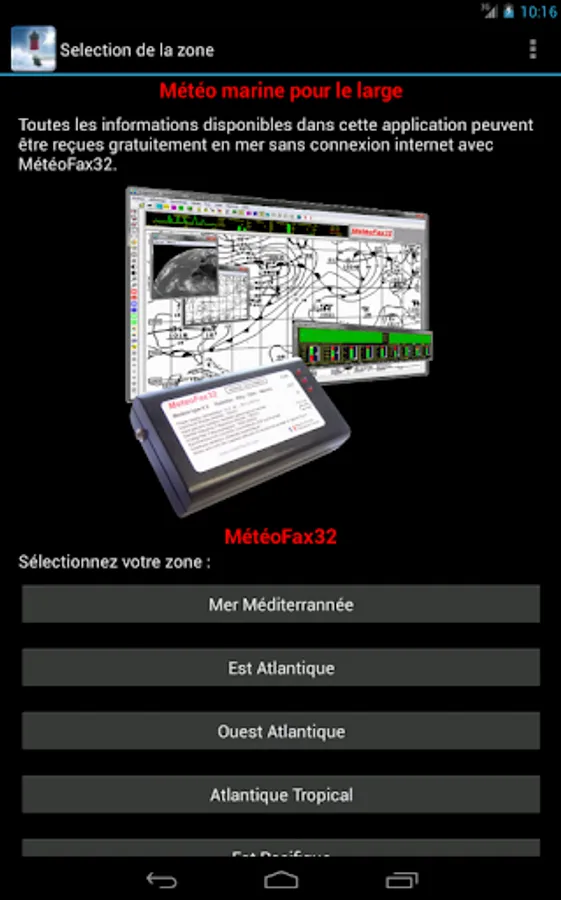 All marine weather information on Atlantic ocean areas, Pacific Ocean, the North Sea Mediterranean Sea. Isobaric maps, forecast maps, wind speed, sea state, swell forecasting, ice situation, tracking tropical phenomena, satellite photos. 120 records updated weather 2 to 4 times per day. Every document from official sources and are perfectly reliable.