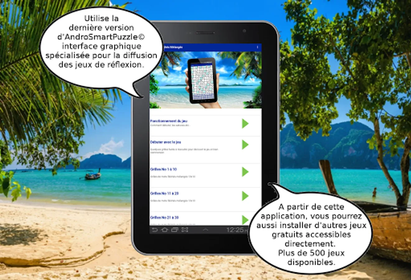 You will find in Other games links to many games. Once installed, these games can run directly from the application or the traditional way from your home screen. With this feature, from each of our applications you have access to every game as if it were a single application or nearly 500 games for reflection. You will find games Crossword, crossword, word search, Sudoku, mojidoku, puzzles ...