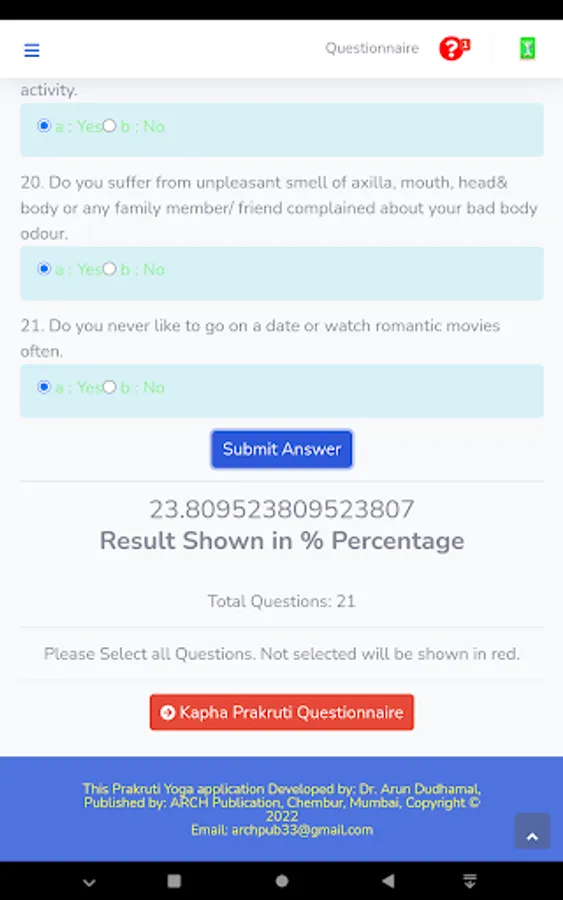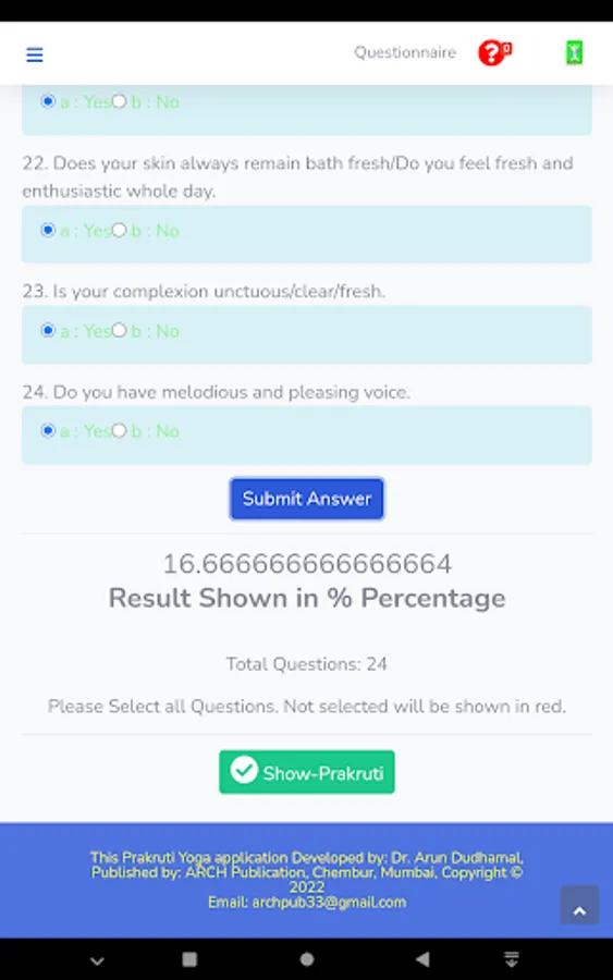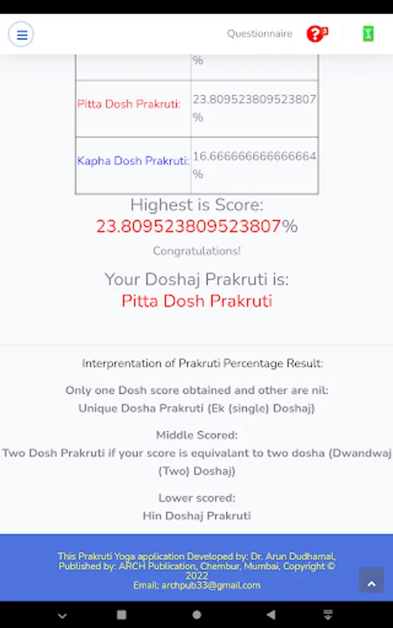 This Prakruti Yoga application Developed by: Dr. Arun Dudhamal,