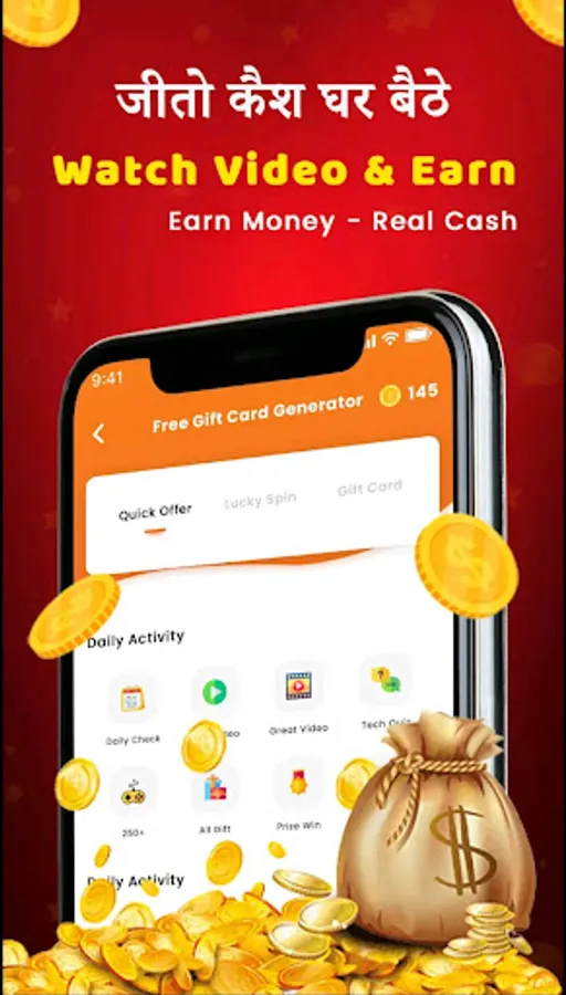 Welcome Daily Watch Video & Earn Money Real Gift Generator App Where You Can Find All Kind Of Gift Cards and real money coupons And Rewards Everything Free!