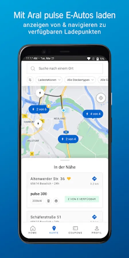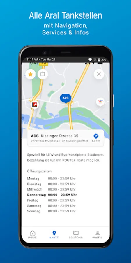 - Let the cheapest Aral station in your area be displayed and you can easily navigate there