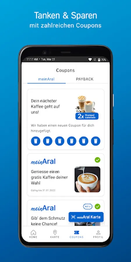 - Link your PAYBACK account to meinAral and use your PAYBACK coupons directly in the meinAral app