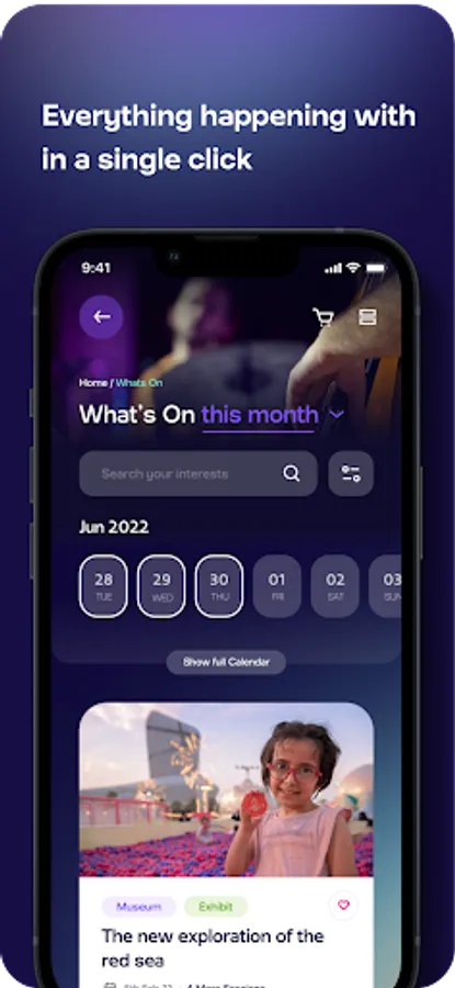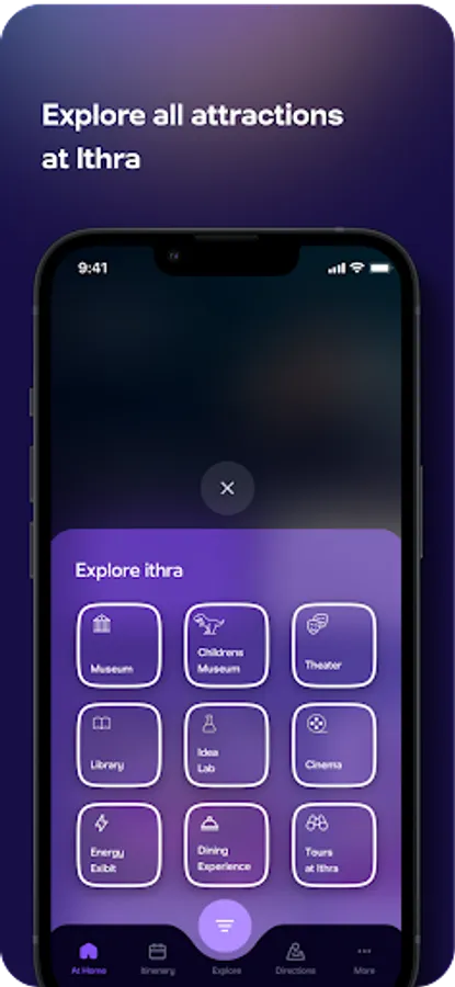 The Ithra mobile app will assist you in your journey of enrichment. Explore the most up-to-date programs offered at Ithra, and create a list of your favorites. We will help you to organize the date and time of your favorites to ensure your next visit is smooth and pleasant.