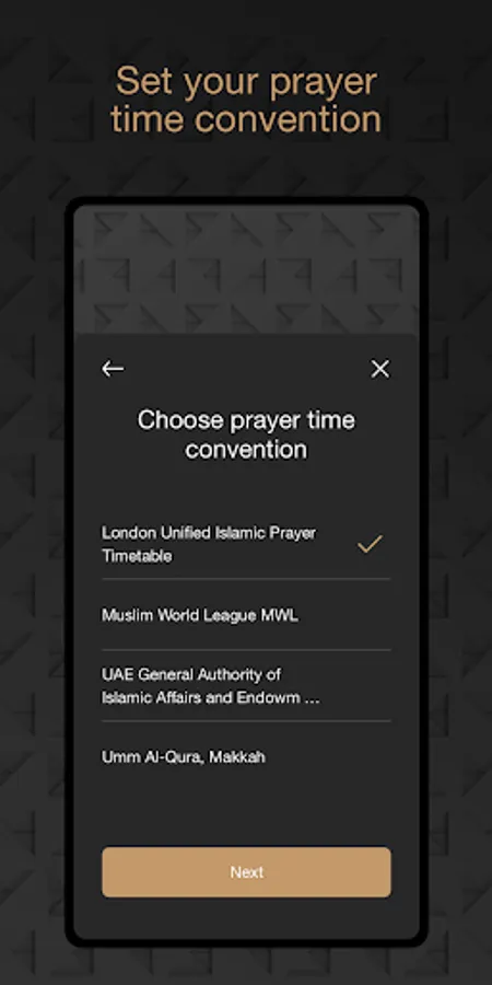 - Set your prayer time convention