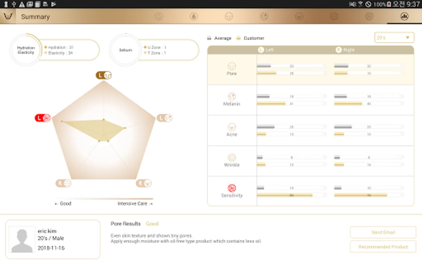 * Skin - Moisture, Sebum, Pore, Brown spot, Acne, Wrinkle, Sensitivity