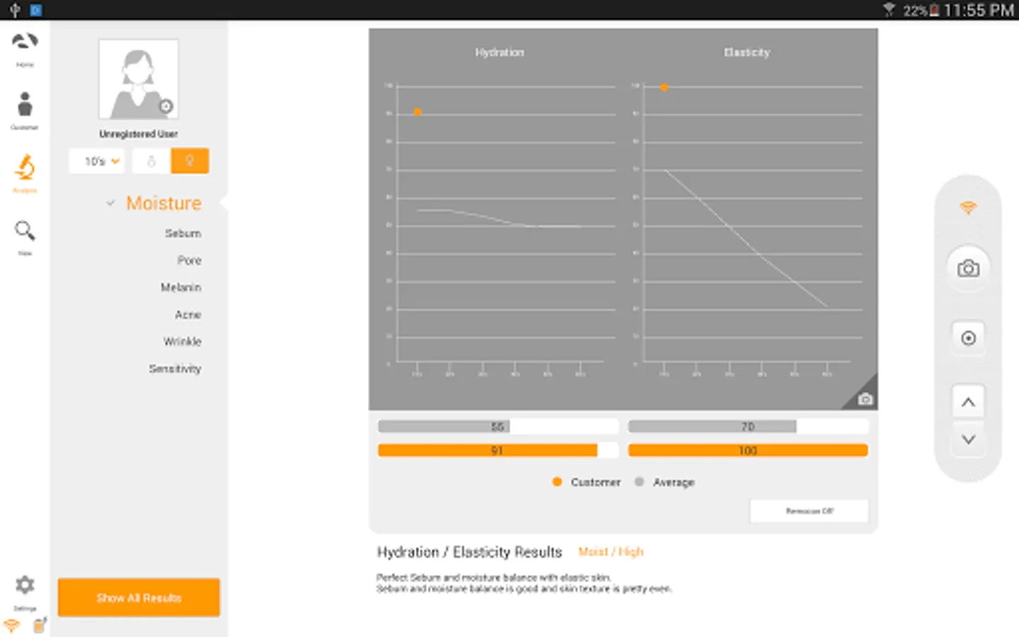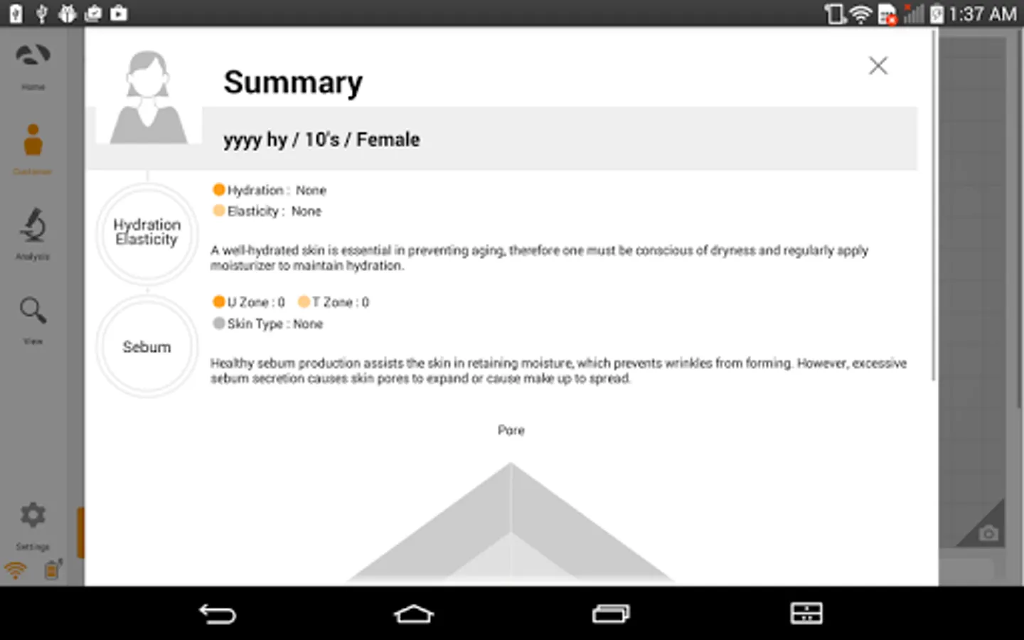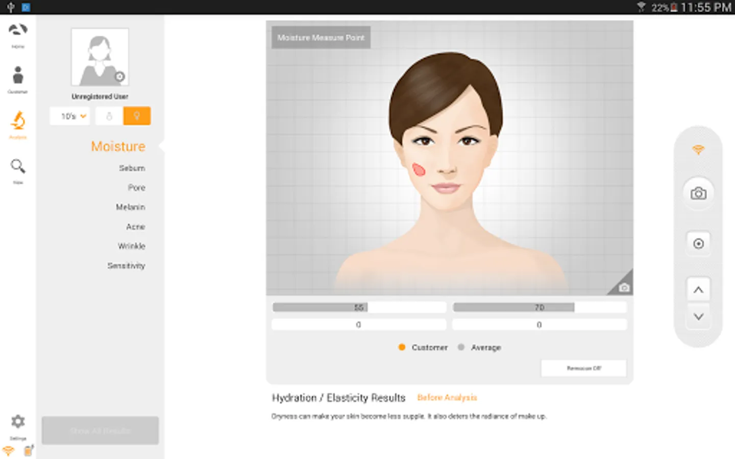 - moisture/elasticity/sebum/pore/brown spot/acne/wrinkle/sensitivity analysis