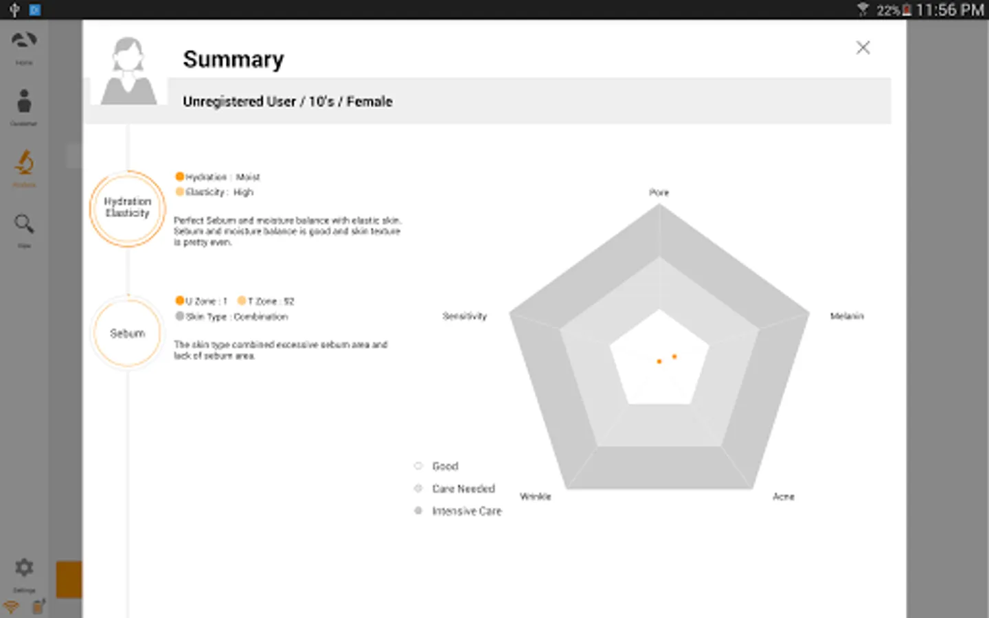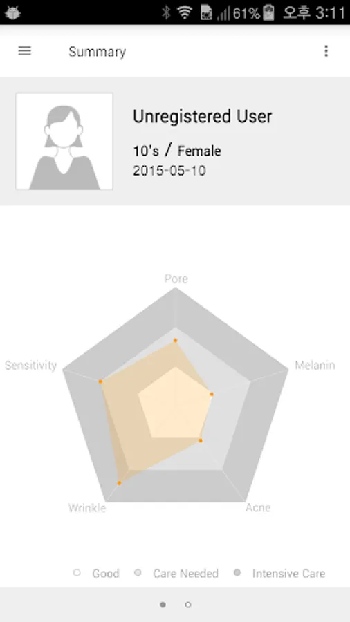 * Skin - Hydration, Sebum, Pore, Brown spot, Acne, Wrinkle, Sensitivity