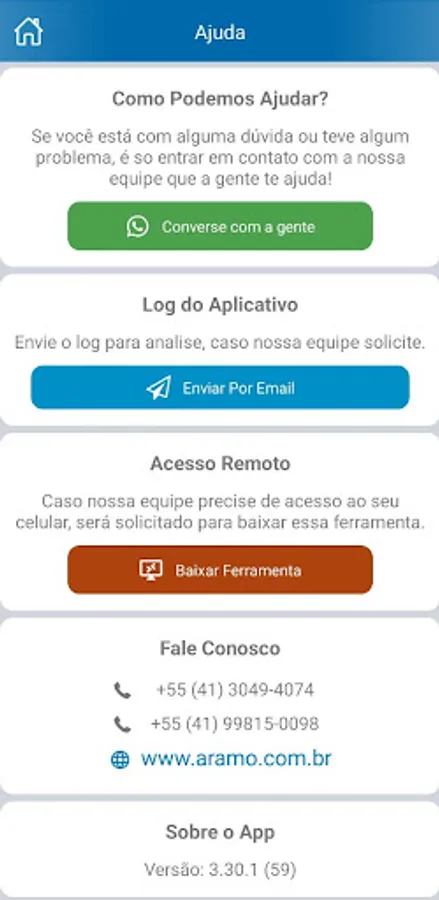In case of doubt, contact us by phone, +55 41 3049-4074 or access our customer area at https://aramo.com.br