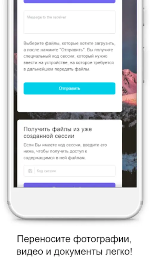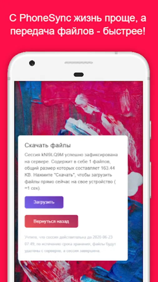 2. Download and run the PhoneSync application on the second device (to which you want to transfer files) from the Google Store (or from the App Gallery, if you have a Huawei device). In the "receive files" section, specify the session code that the application issued to you after successfully downloading files from the first device and click "Get Files".