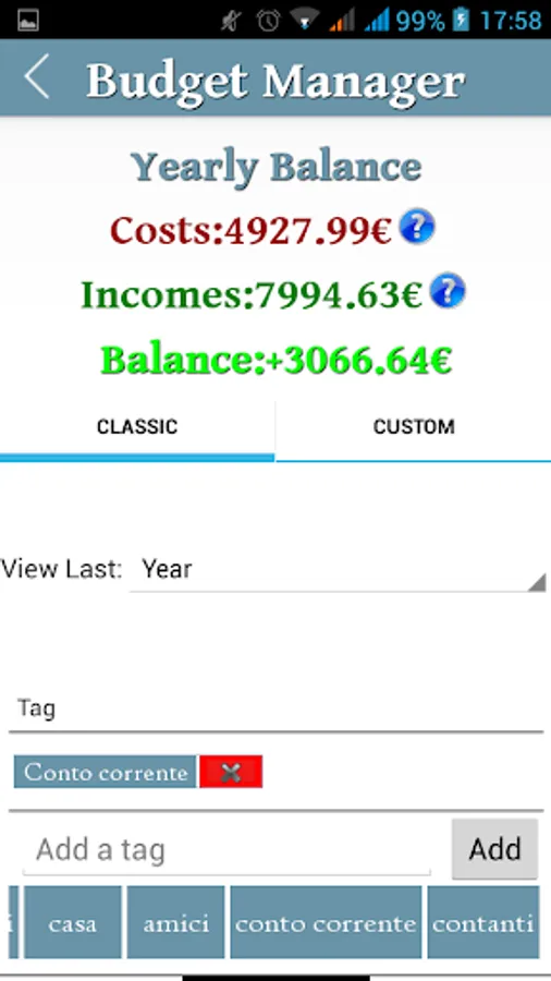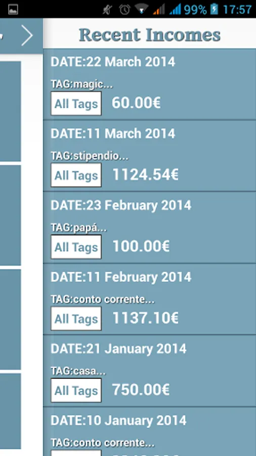 - Tags for costs/incomes