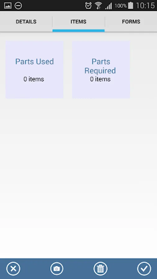 • Parts used, parts required, photographs, notes and customer signatures can be captured