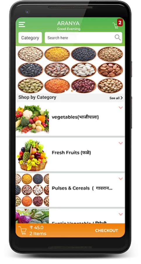 Aranya is an online shopping app where customers can purchase - Grocery, vegetables, fruits, dairy and daily used products.