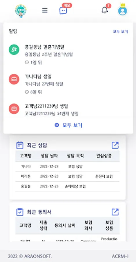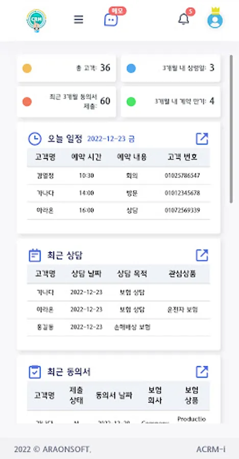 - You can use the data you used in the app in your web browser! If you want to use it in a web browser, please visit https://acrmi.araonsoft.com/.