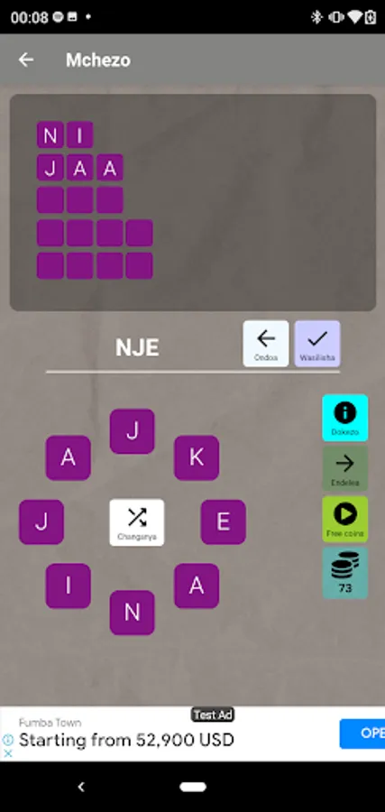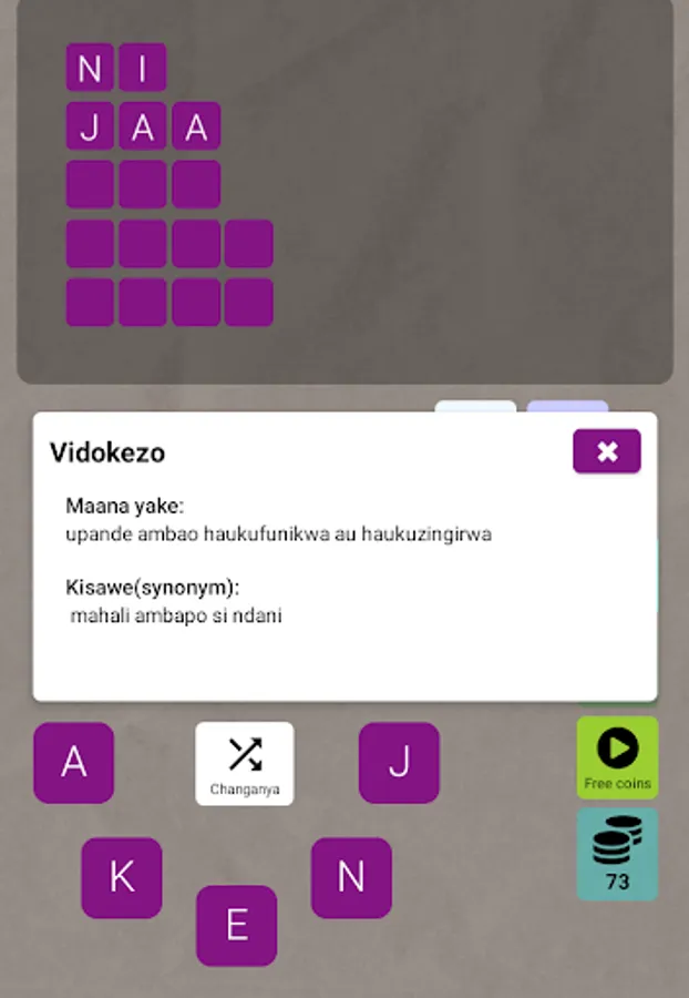 Mchezo wa Kiswahili wa kuchemsha ubongo kwa kutunga neno au maneno kulingana na changuo la konsonanti na vokali unazopewa.