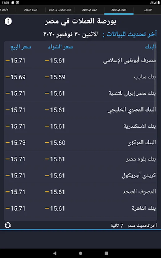 • The daily exchange rate of all Egyptian banks in the market from the Central Bank and the official exchange rate for the dollar, the euro and the major currencies against the Egyptian Central Bank